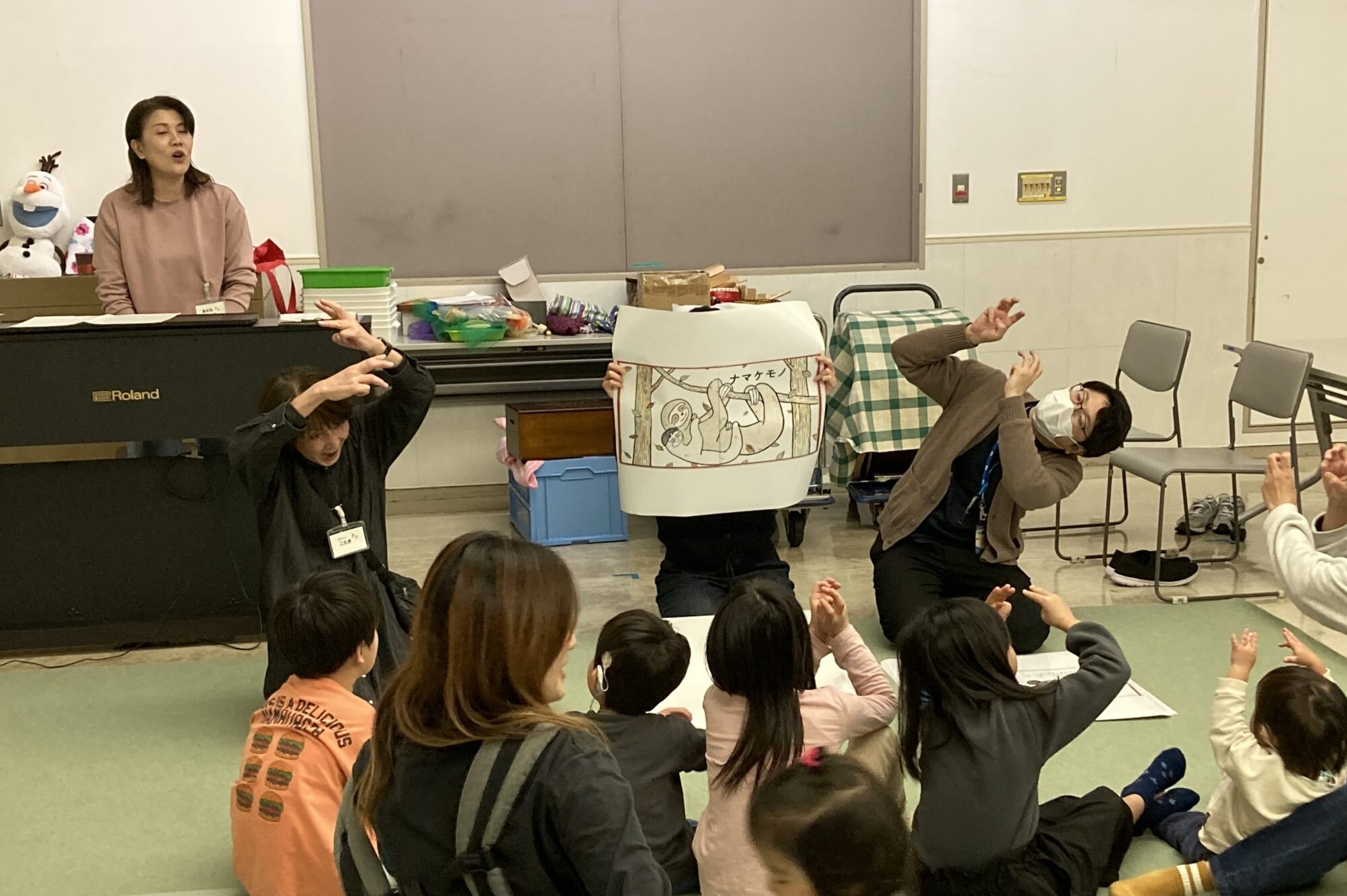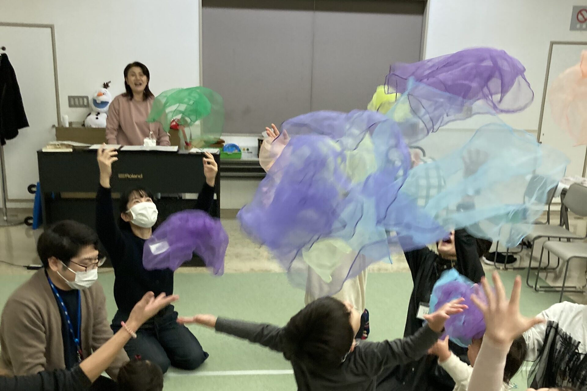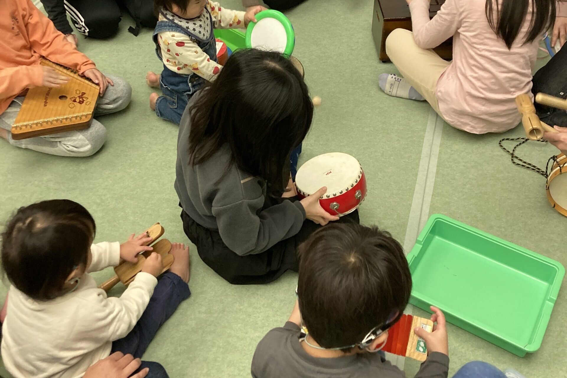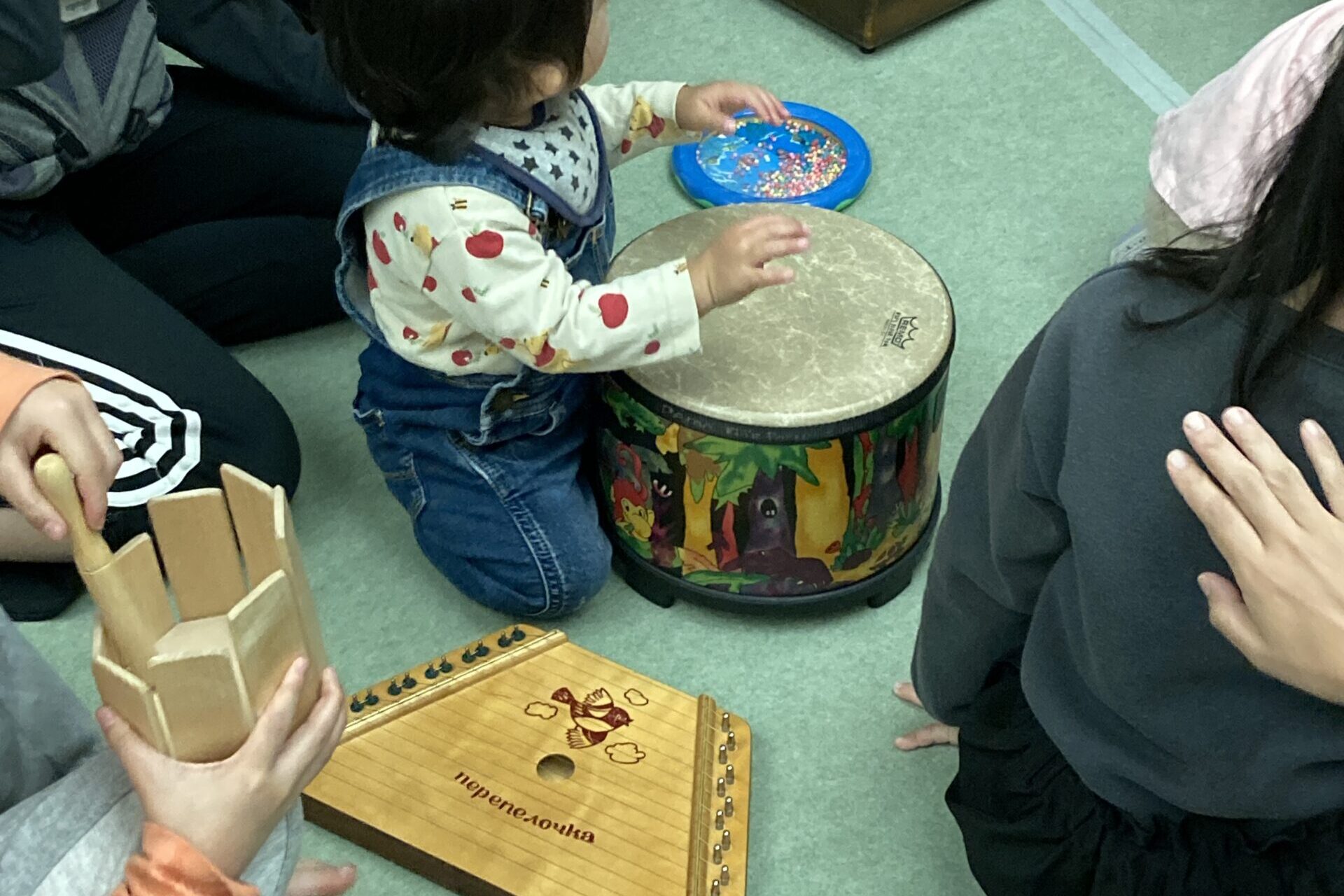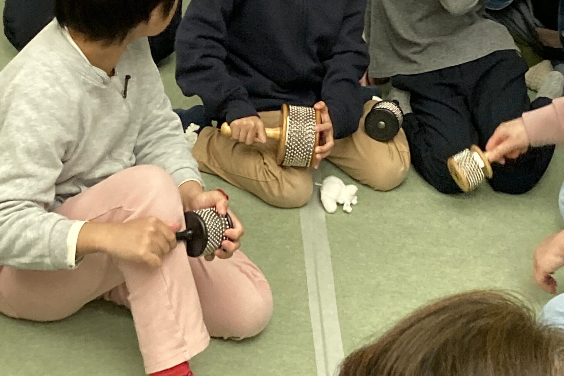 おもちゃ図書館スペシャルタイム「音であそぼう!」は、おもちゃ図書館の楽器を使った音あそびや、体を使った音楽あそび、歌付きの絵本の読み聞かせなど・・・音楽療法士さんと一緒に親子で楽しむ、「音あそび」のプログラムです。