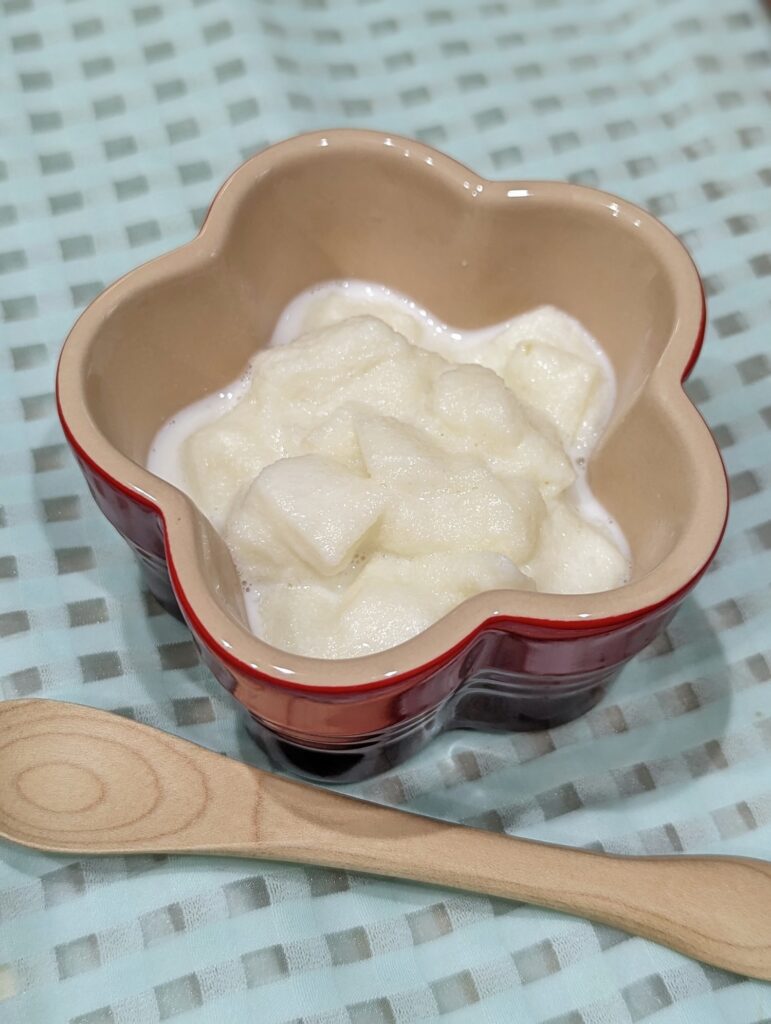 今月は通園の形態食として提供しているパン粥の電子レンジVer.をご紹介!