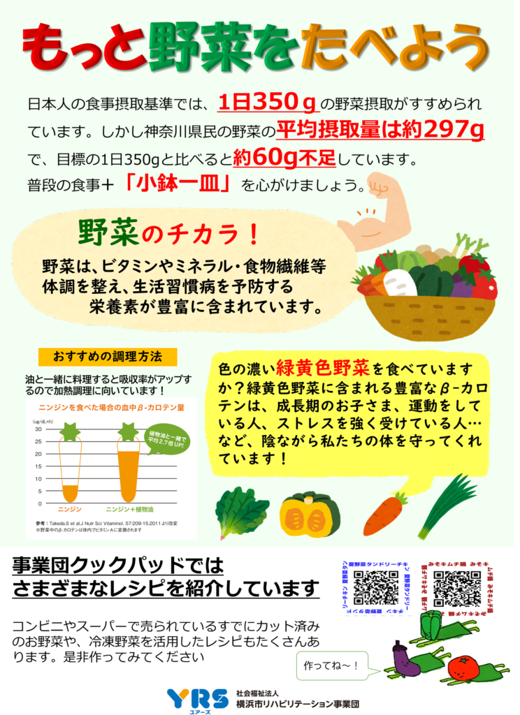 今月のポスターでは、野菜の栄養素やおすすめの調理法を紹介しています。