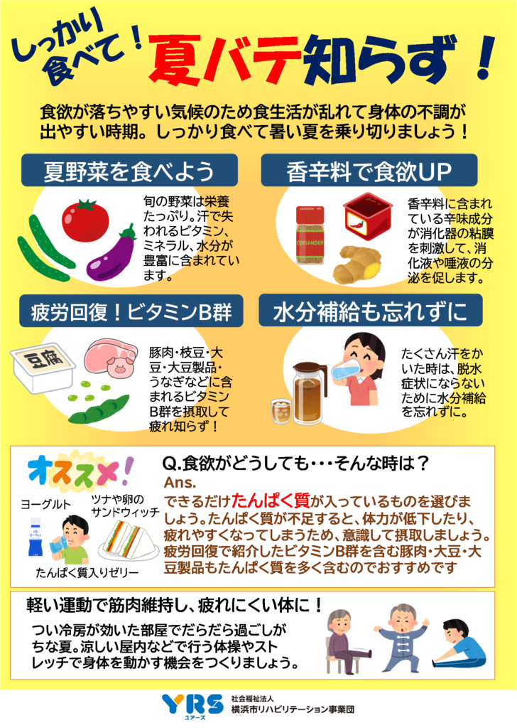 今月のポスターでは夏の食欲低下対策や疲労回復について紹介しています。