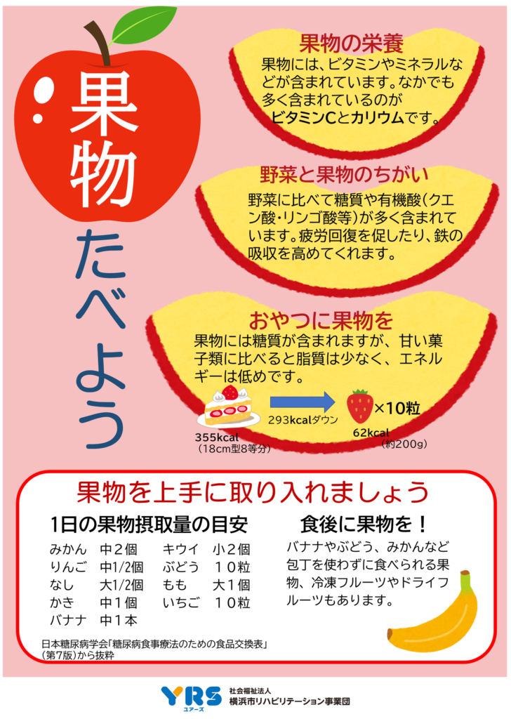 今月のポスターでは、果物の栄養や取り入れ方を紹介しています。