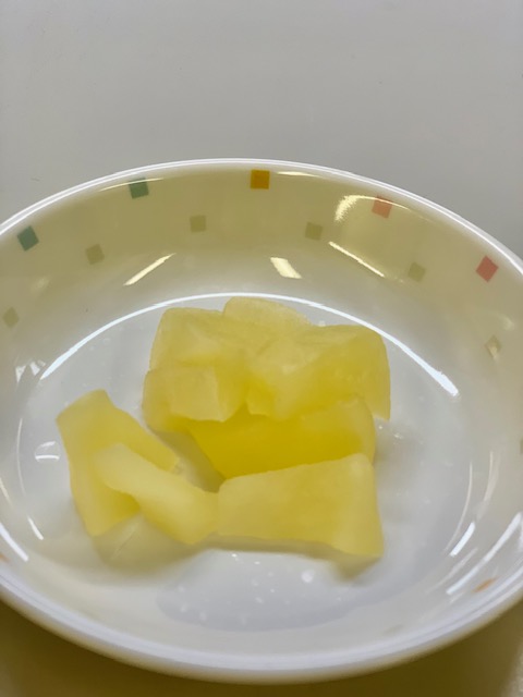 今月のレシピは、加熱することでやわらかくなり、お子さんでも食べやすいりんごのコンポートです。