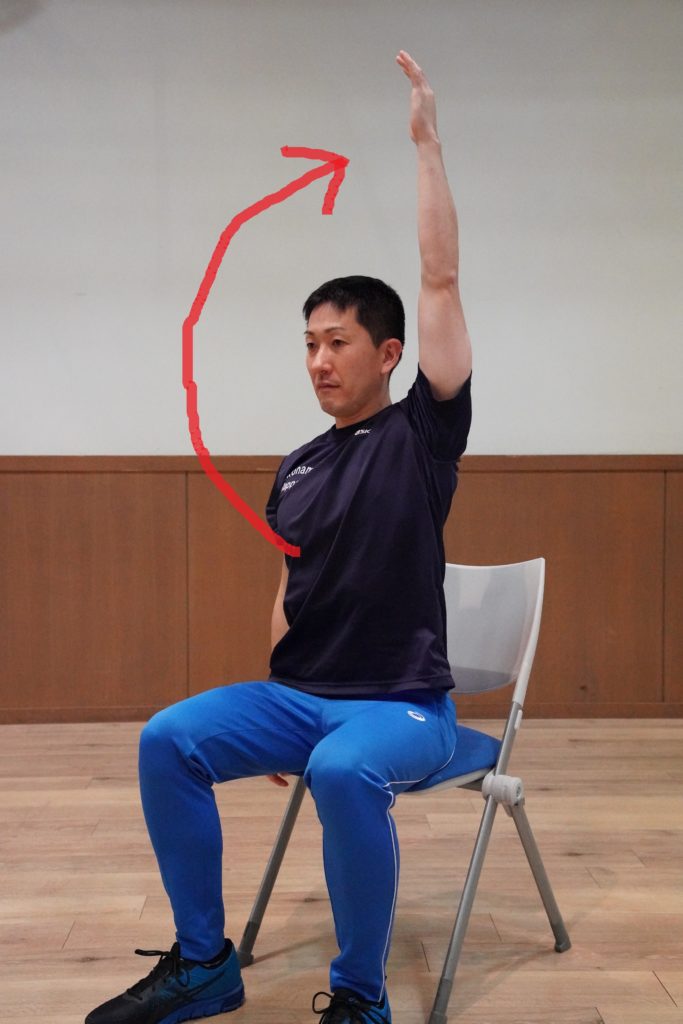 ② 片方の手を前からゆっくり上げていきます
