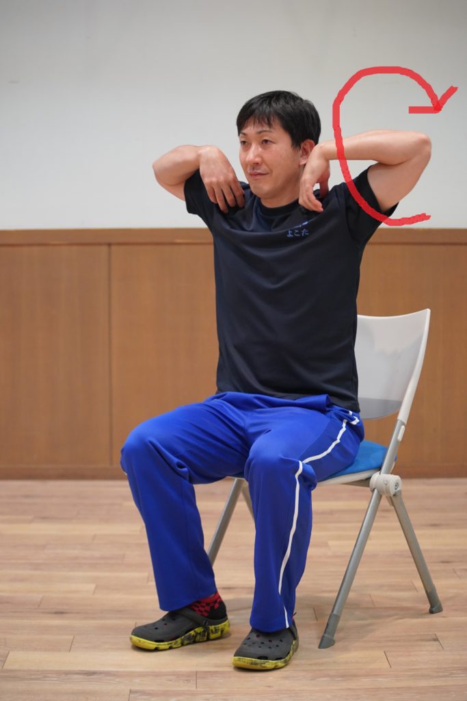 ③ 肘で円を描くように前から後ろに10回まわします