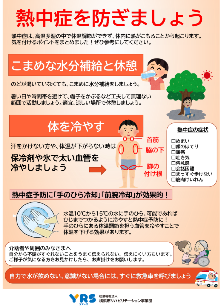 今月のポスターでは熱中症対策について解説しています。