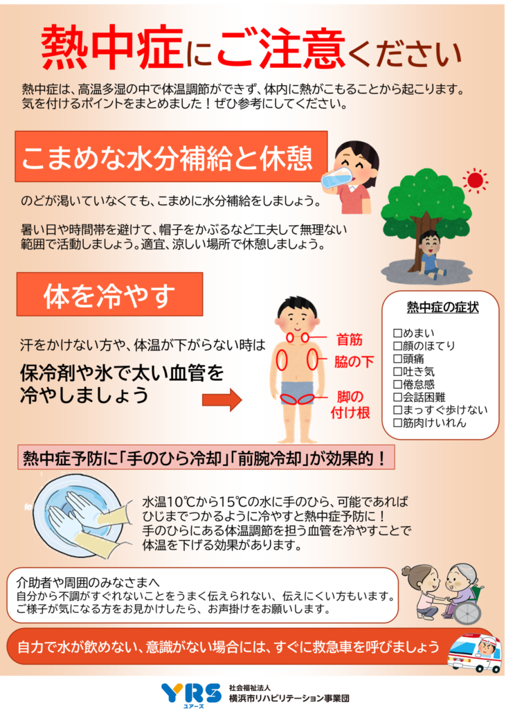 今月のポスターでは熱中症対策について解説しています。