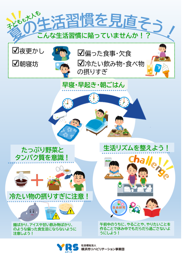 今月のポスターでは夏の生活習慣改善について解説しています。