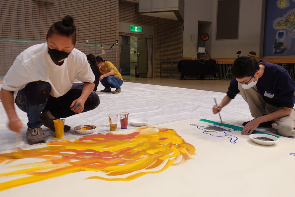 2020年10月31日(土)に障害者スポーツ文化センター横浜ラポールにて行われた「KENSUKE TAKAHASHI アートワークショップ2020」で制作された作品です。障害児者とその家族52名 ×横浜を拠点に活動するペインターKENSUKE TAKAHASHIさんによる14m×1.8mの巨大共 同制作作品は、色鮮やかで大きな希望の翼を持った不死鳥(横浜ラポールがある港北区のシン ボルマークは白い二羽の鳥)が、参加者それぞれの個性を表現するように描かれています。作品は障害者週間啓発 障害のある方の作品展・演奏会@横浜市役所、横浜港大さん橋国際客船ターミナル、大倉山記念館に展示されました。