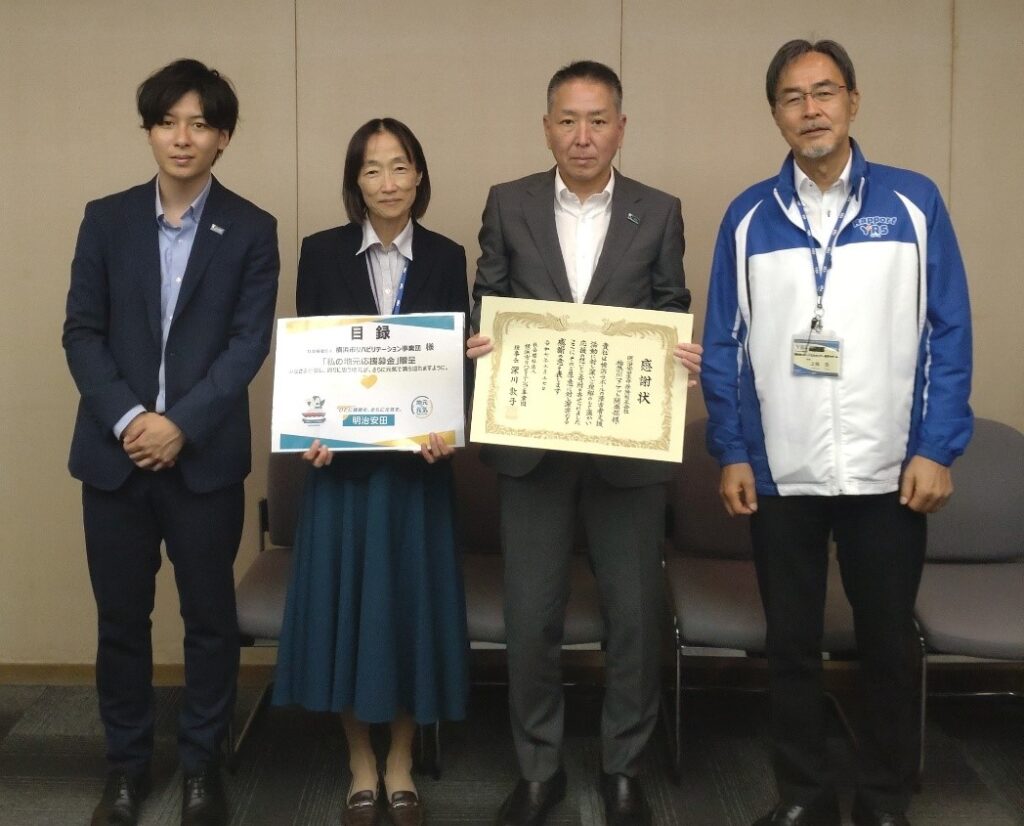 明治安田生命保険相互会社神奈川マーケット開発部から横浜ラポールへ、明治安田生命地元の元気プロジェクト「私の地元応援募金」の一環として、ご寄附を賜りました。(画像1)