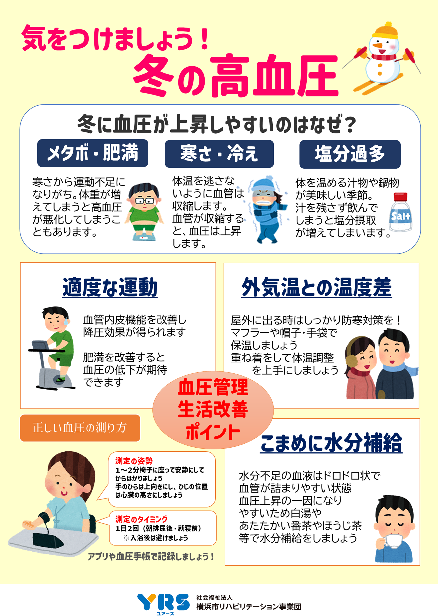 特に寒い冬は血管が収縮し、血圧が上がりやすいので、対策しましょう!