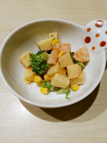 今月はマヨネーズとケチャップを混ぜたオーロラソースがおいしいサラダです。