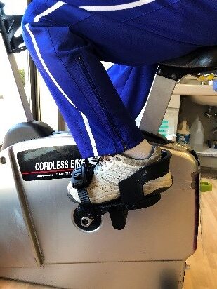 とはいえ、マシンにもひと工夫をしています。例えば、装具などを付けていても自転車(エアロバイク)が漕ぎやすいよう、かかと付きのペダルに変えたり、車椅子の方が移動や乗り移りをしやすいようにスペースを広く取っています。