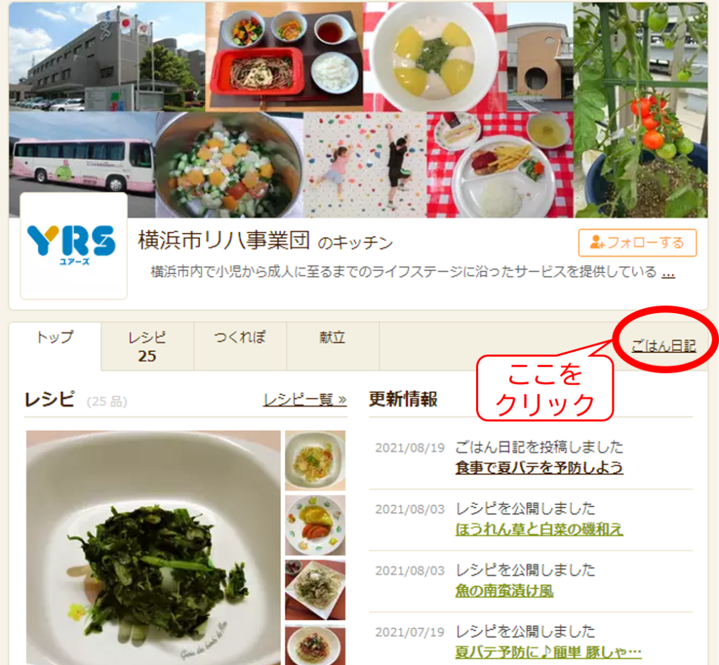 横浜市リハ事業団クックパッドアカウントのトップから飛ぶことができます↓