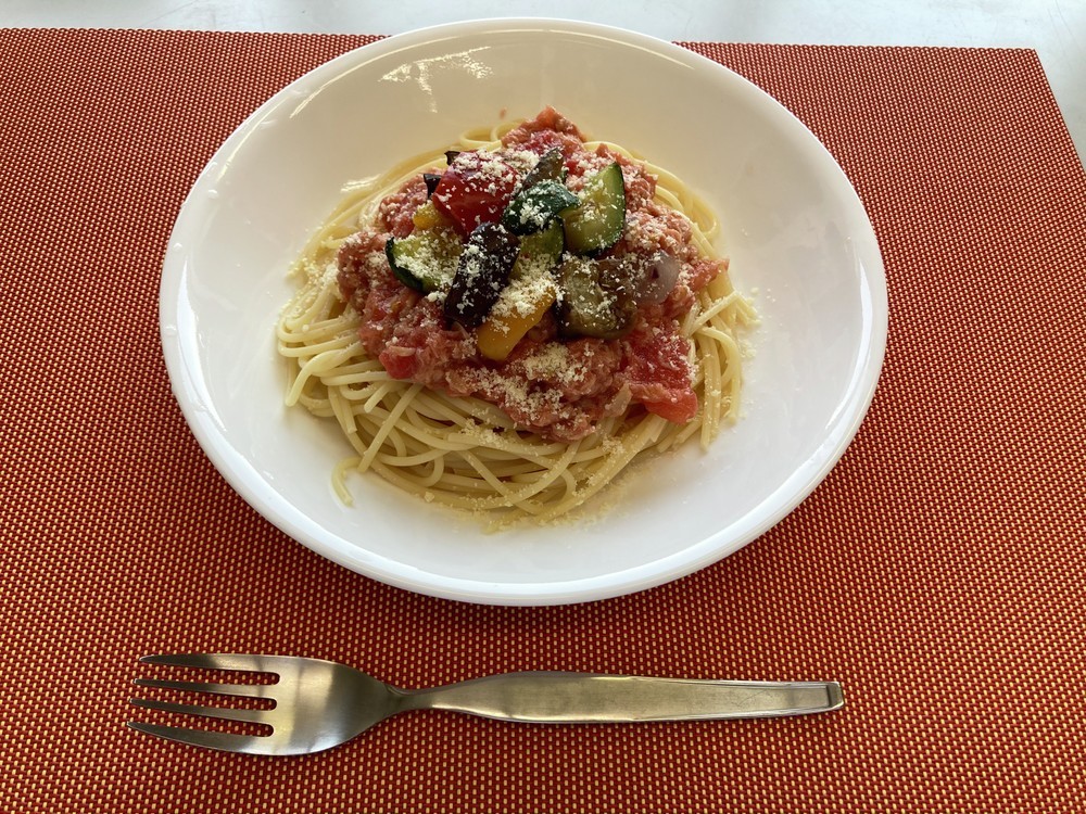 フリーザバッグを使って作るパスタ。夏野菜たっぷりなので身体の熱を逃がす効果もあります!