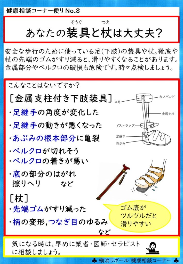 健康相談コーナー便り【あなたの装具と杖は大丈夫?】