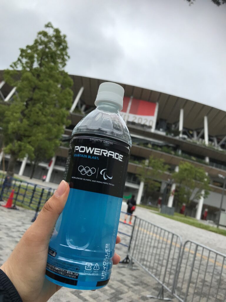 海外の選手だとあの青い飲料が人気でした。(わかる人には、なんのこと か分かるかも) 飲んでみると結構甘いブルーハワイのシロップて感じのこれです。 最終日に余ったから飲んでみる?と陸連の方に言われ貰えました。