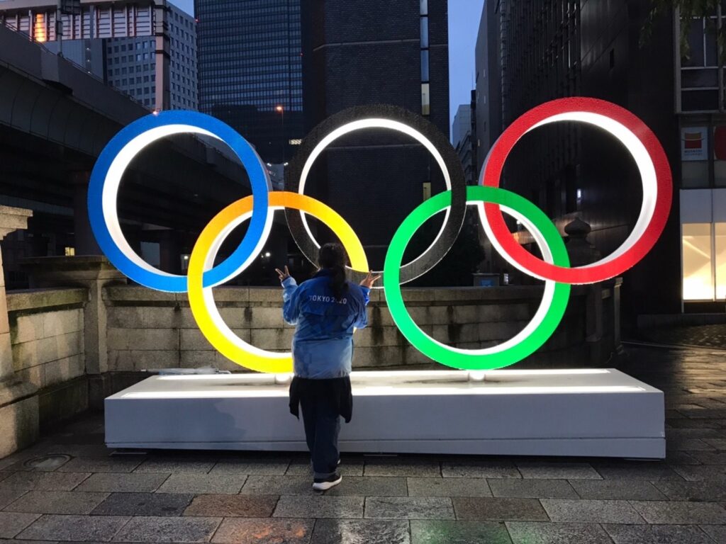 エンブレム前には、たくさん写真を撮る外国の選手やメディアの方やボランティアの方な どたくさんの姿を見ることが出来ました。
