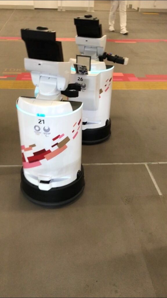 おしぼりをくれるロボットは、いつも冷たいおしぼりを用意してくれてた ので暑かった競技会場には、良かったです。