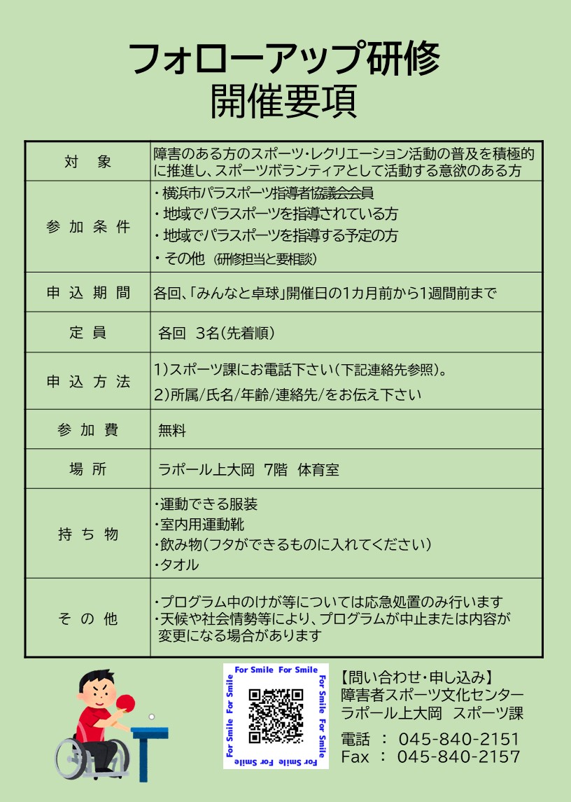 ラポール上大岡フォローアップ研修(卓球)