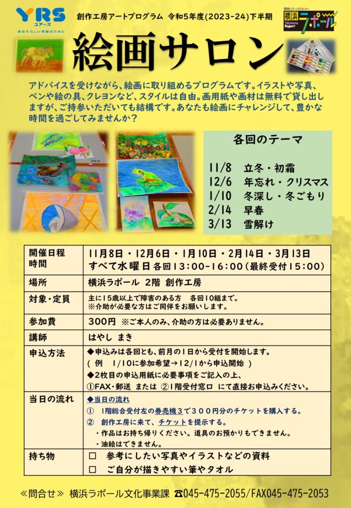 お問合せ・お申込みは横浜ラポール文化事業課・創作工房まで。☎045ー475-2055