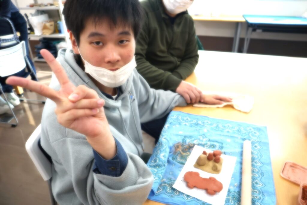 自分で作った作品にご満悦!思わずピースサインも出てしまいますね。