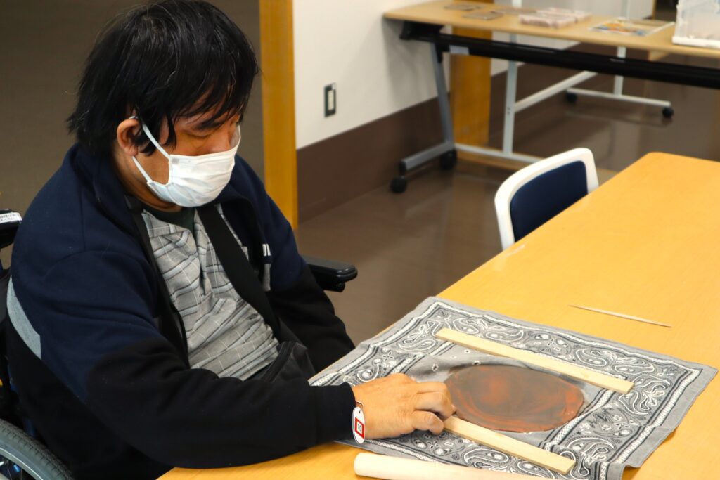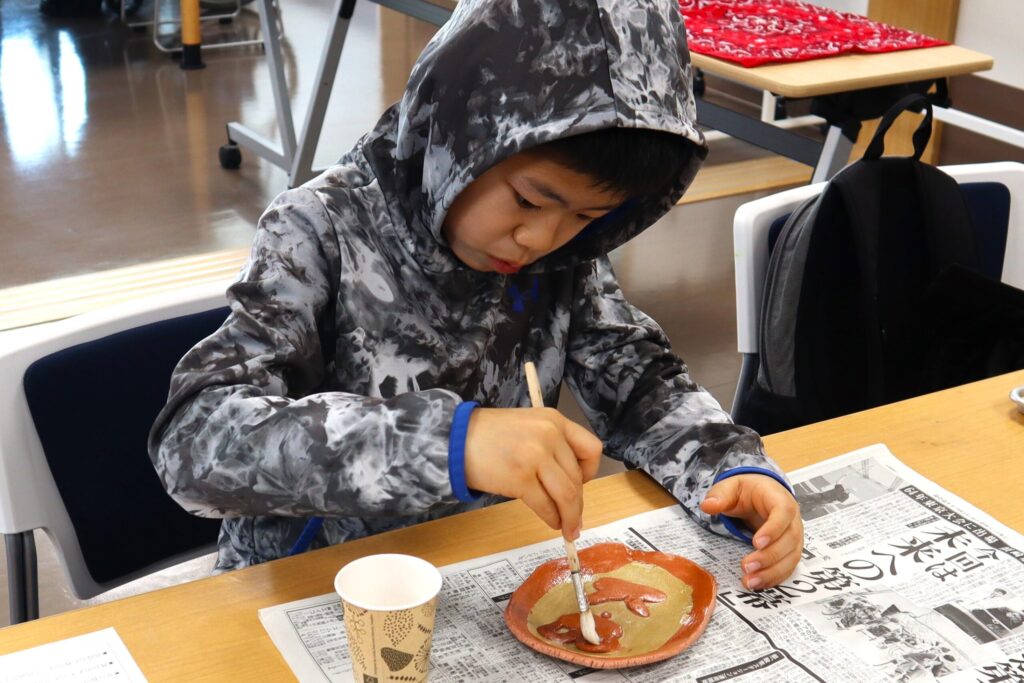 2回目。最初は1回目に作った作品にコート剤を塗るところからスタートです。塗り残しがないよう丁寧に塗っていますね。