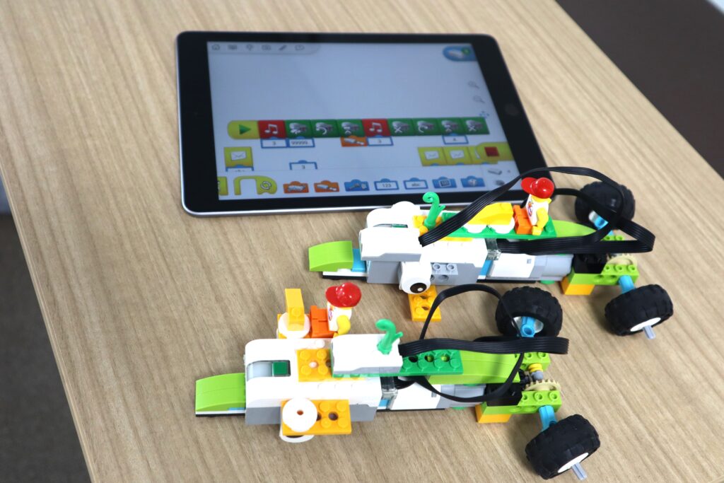参加者には、iPadとレゴの部品が1組に1つずつ配られます。まずは、iPadをみながら、レゴを組み立てます。組み立ての手順もなんとiPadが教えてくれます。