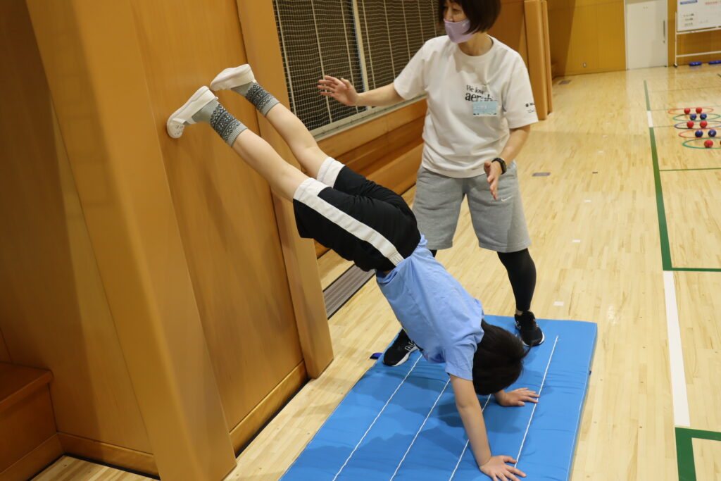 後半はエアロビックダンス。これまでは最終回のミニ発表会に向けてダンスの練習をしていくのが多かったのですが、今回はちょっと嗜好を変えて最終回を子どもたち・保護者の皆様・コーチたち全員で楽しむ「みんなでエアロビックダンス!」として、まとめていくことにしました