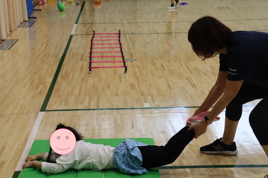 体操ではきみちゃんコーチの指導の下、「手」・「足」・「お腹と背中」など各回でテーマを設けて運動に取り組みました。