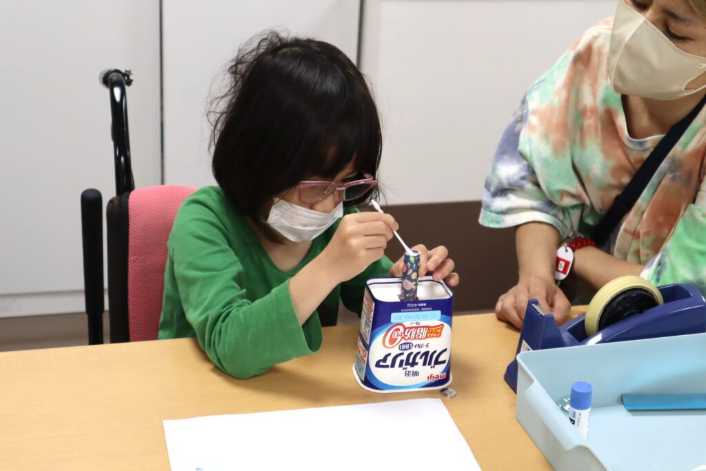 次回のわくわく工作教室は6月22日(土)に折り染め鉛筆立てを作ります。