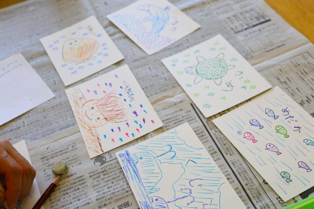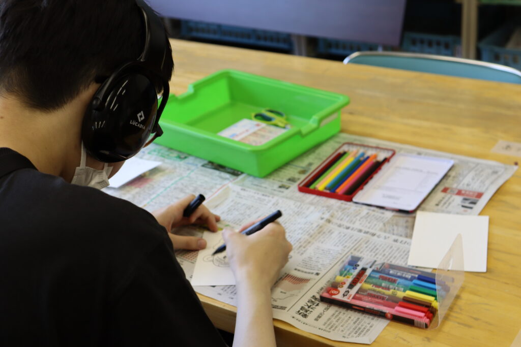みなさん、とても集中して作成されていました。色鉛筆やマジックなど、自分の好きな画材を使ってどんどん描いていきます。