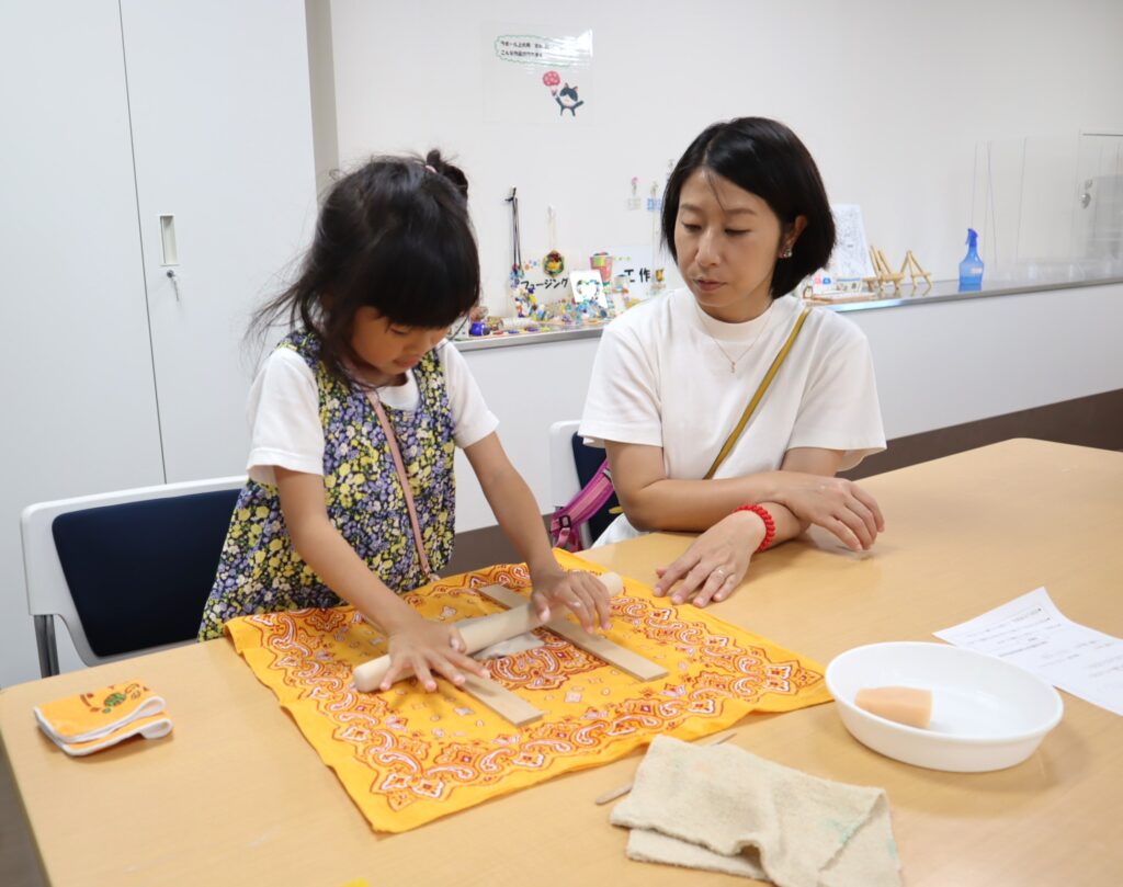 道具を使って粘土を伸ばすことで、粘土の厚さが同じになるので、お皿や湯呑など、厚さを一定にしたい作品づくりに適しています。