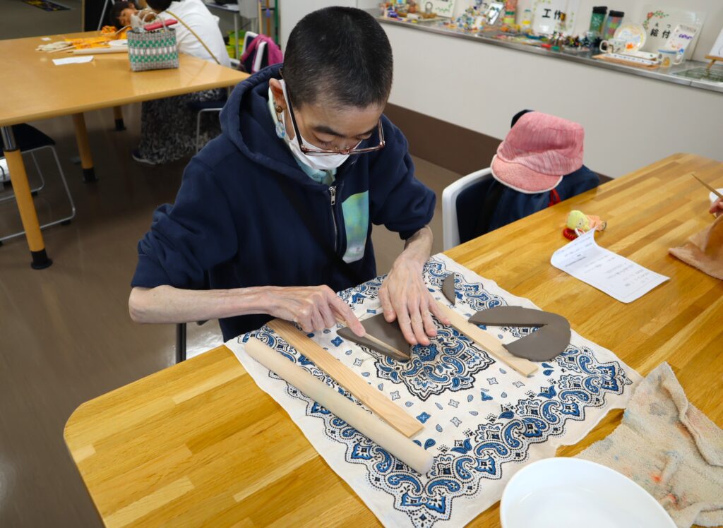 5月は、木の板と棒を使って、粘土を平らに伸ばして作る「板づくり」に挑戦しました。