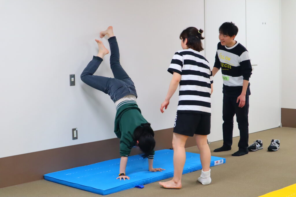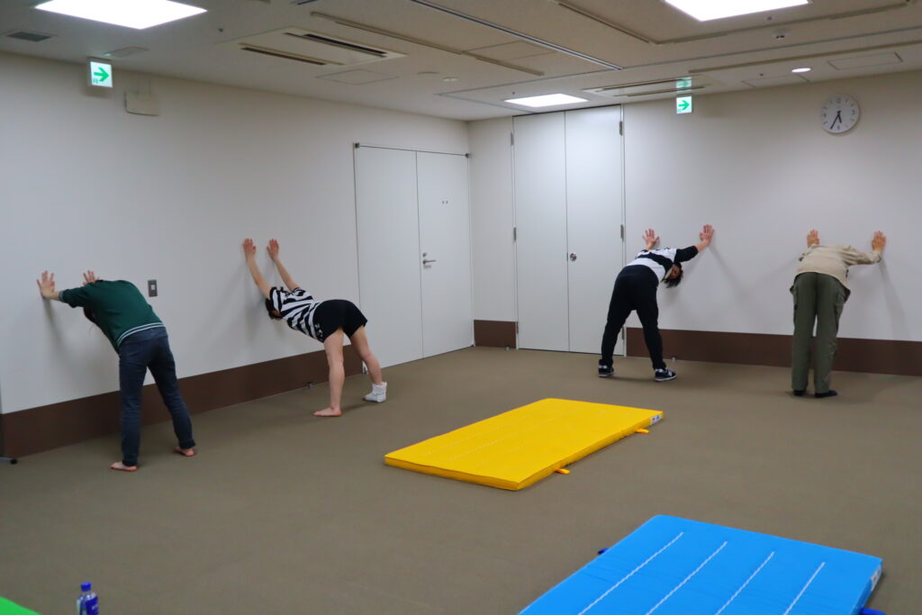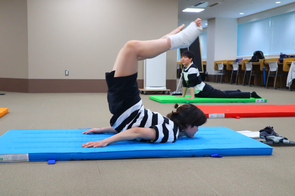 45分間、ブリッジや倒立、開脚など、さまざまな柔軟技を練習しました。体のすみずみが伸びましたね。