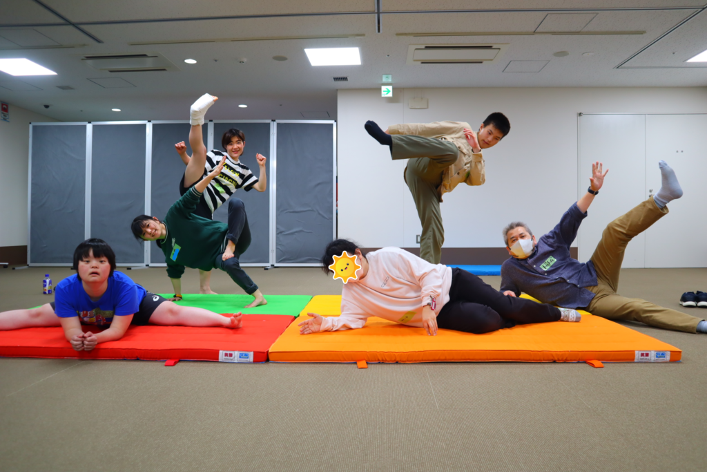 最後は参加者の皆さんで集まっての集合写真です。今日習得した柔軟技のなかから、それぞれ好きなポーズを取ってくれました。