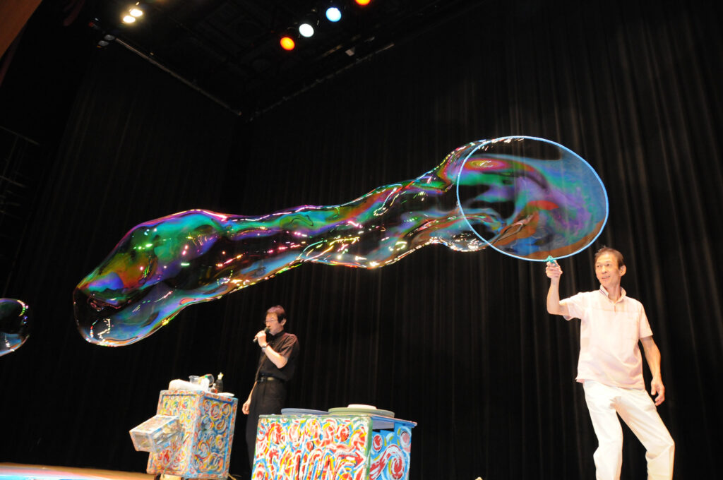 色々な種類のシャボン玉に会場のお客様は大喜び。