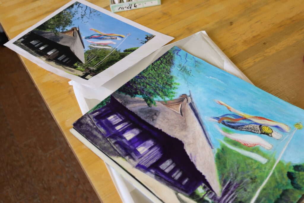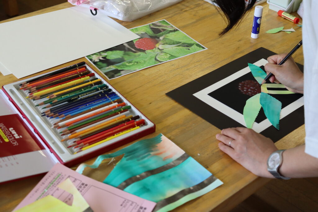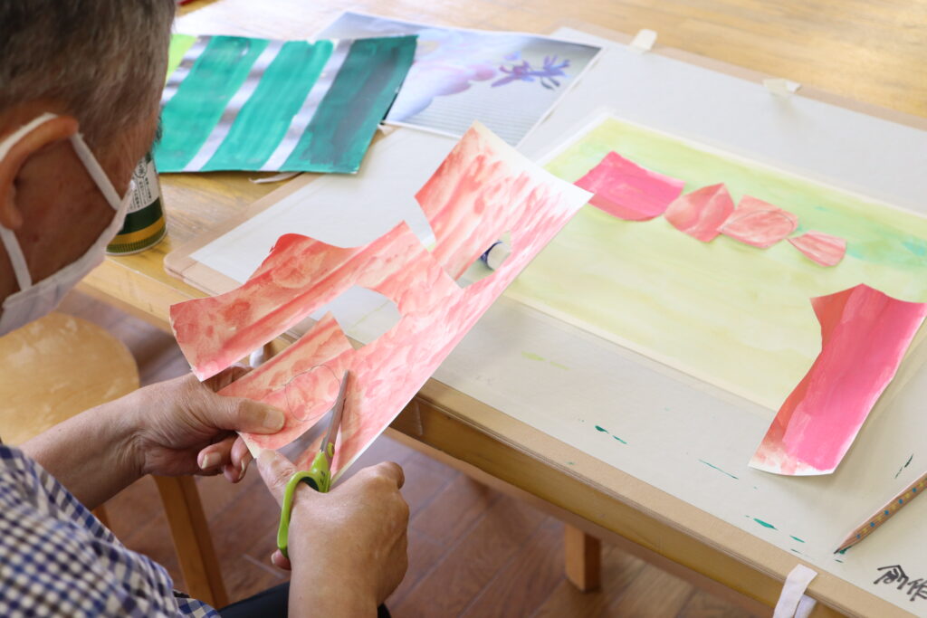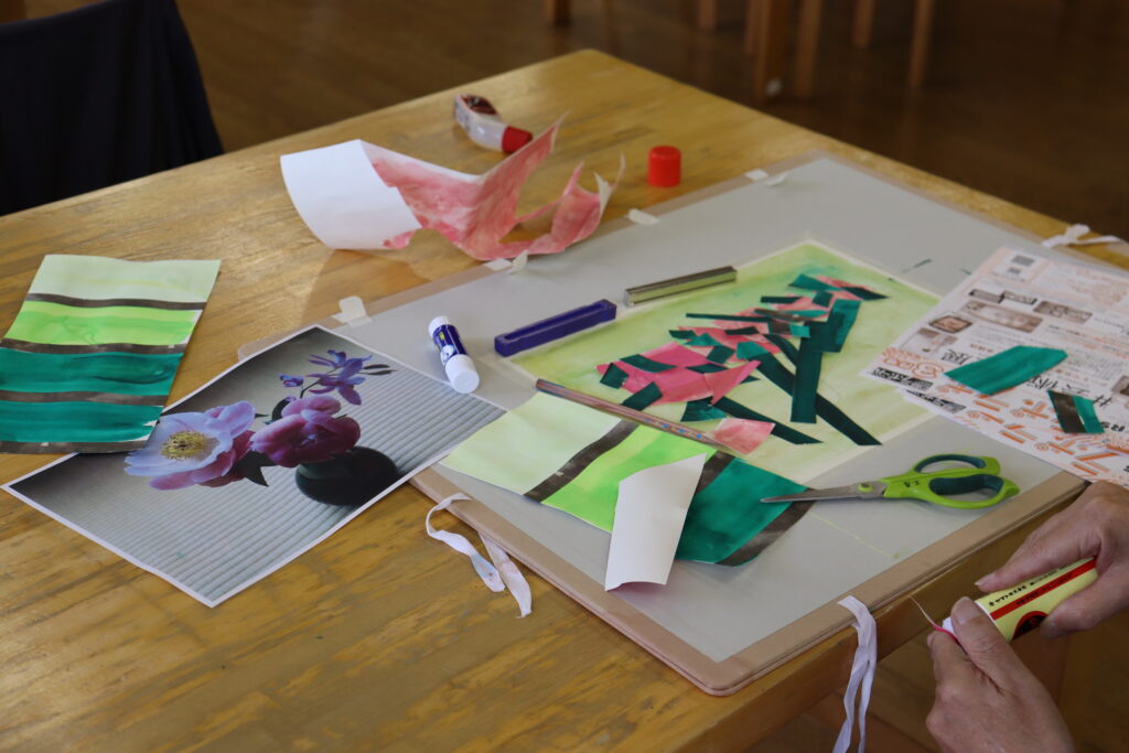 コラージュ制作の後は、前回描いた絵の続きをやられる方、自宅で描いた絵をもって来られる方もいらっしゃいました。
