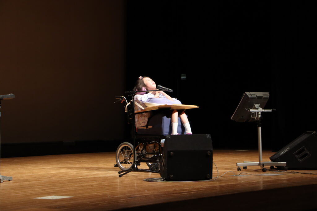 横浜ラポールシアターはステージに車いすのままスロープで上がれます。素敵な歌声を聞かせてくれました