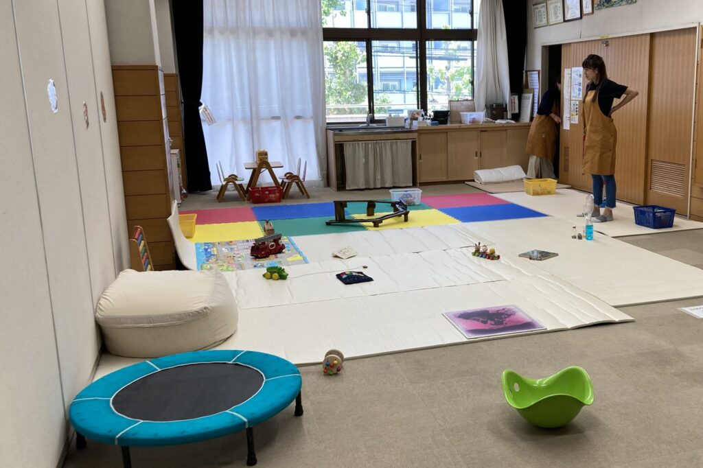 「ラポールおもちゃ図書館がやってくる!」イベント開催日には、おもちゃ図書館スタッフが会場に伺います。シーサイドおもちゃ文庫のスタッフさんと一緒に選んで持ってきた色々なおもちゃをご紹介しつつ、そのおもちゃの説明だけでなく、おもちゃをどんなふうに使ったら楽しいかを、参加者の方と一緒に遊ばせていただきながら実践でお伝えしたり、「ラポールは気になっていたけど、まだ利用したことがない」…というご家族にはおもちゃ図書館のサービスについてのご説明をします。