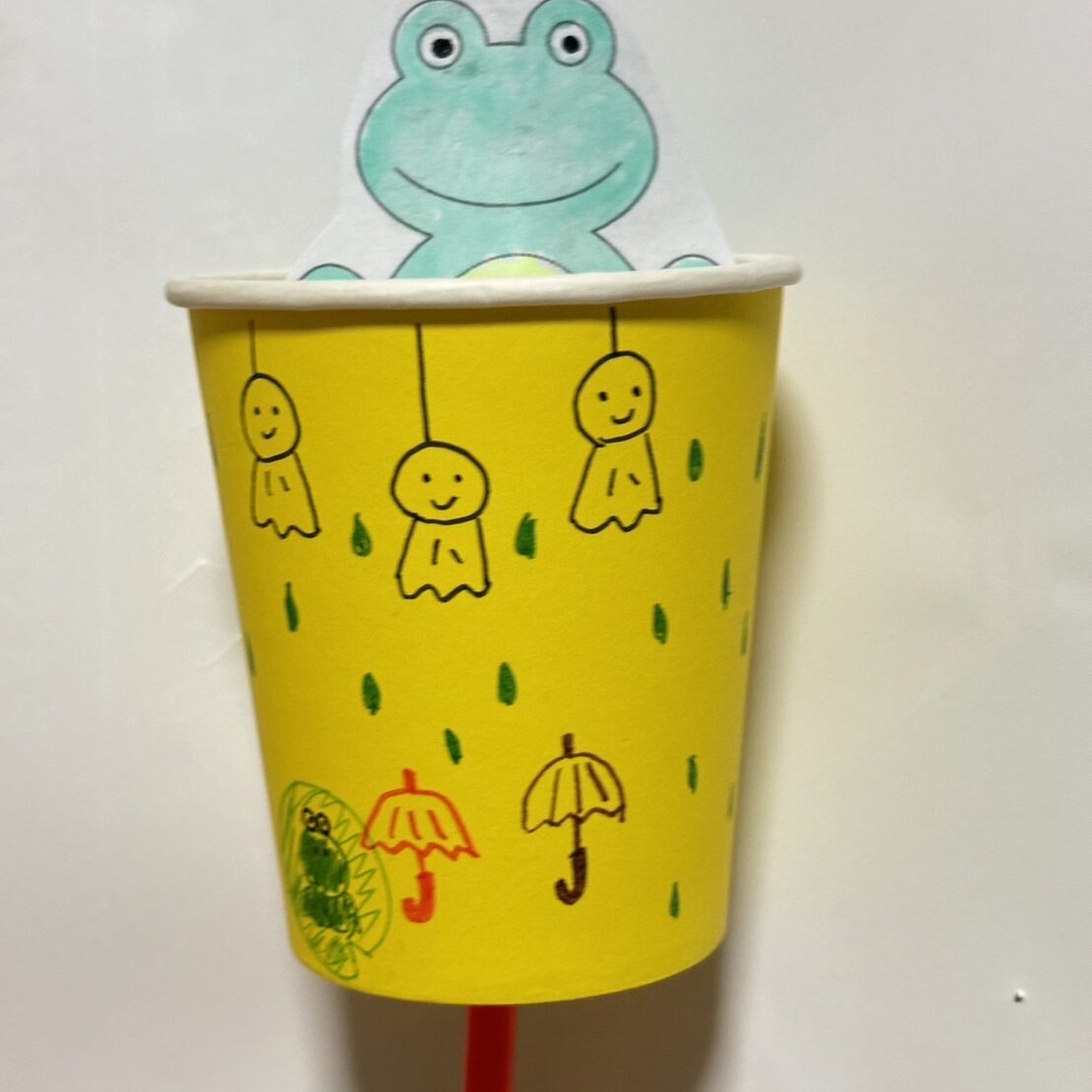 5月の工作ひろばは、「ゲコゲコかえる」づくり。材料は紙コップや曲がるストロー等、身近な素材を使います。ストローを上下に動かすと、「ゲコゲコ」とかえるが鳴きながらコップの中に見え隠れ。紙コップに好きな絵を描いたり、シールを貼ってデコレーションしたり、みなさんとても楽しそうに作成されていました!