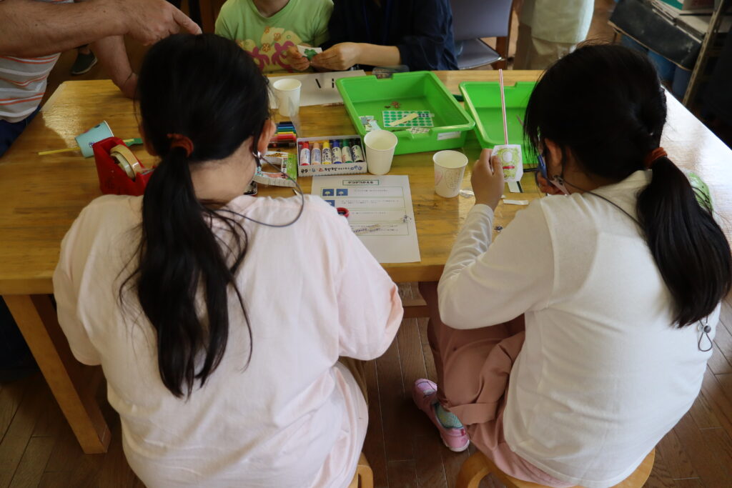 おもちゃ図書館前のスペースで実施していた、「工作ひろば」。現在は、ラポール2階の「創作工房」で実施しています。創作工房の広い空間で、簡単工作おもちゃづくりが楽しめます。