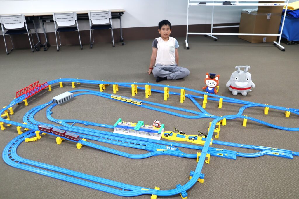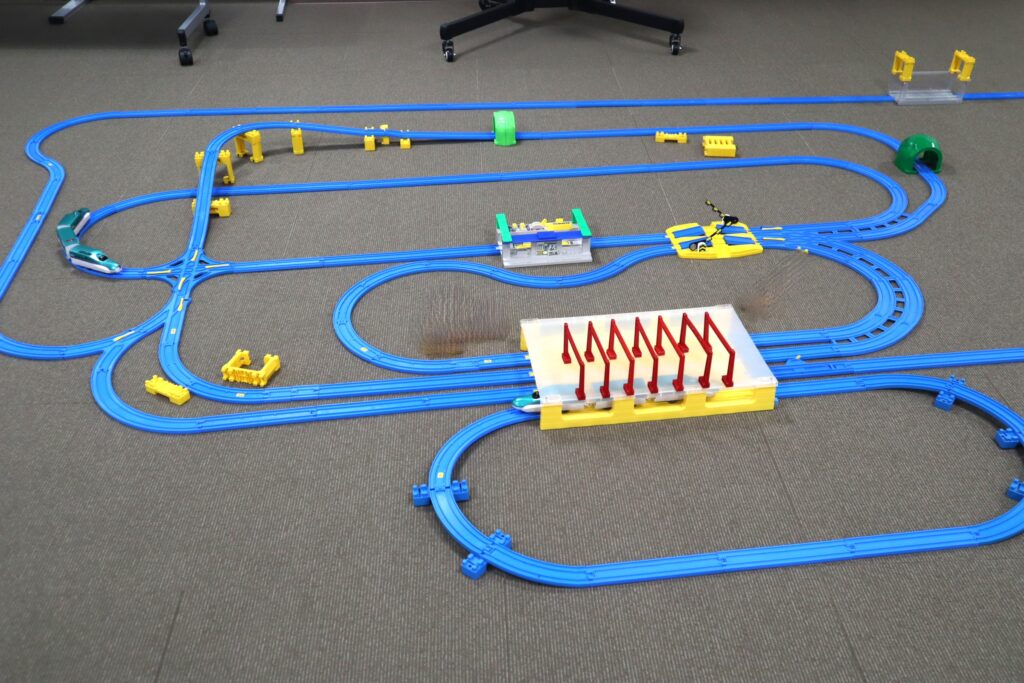 沢山のプラレールの車両や様々な情景部品、レール部品をご用意しており、お家ではなかなか出来ない規模で楽しめます。