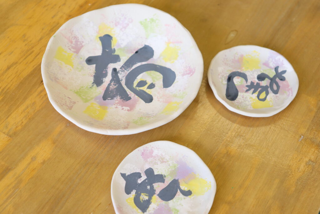 陶芸専用の絵の具やクレヨンのような画材を使って、色を塗ったり・絵を描いたり・文字を書いたり・・・「絵付け」といっても人によって作風は異なり、とても奥が深いですね。