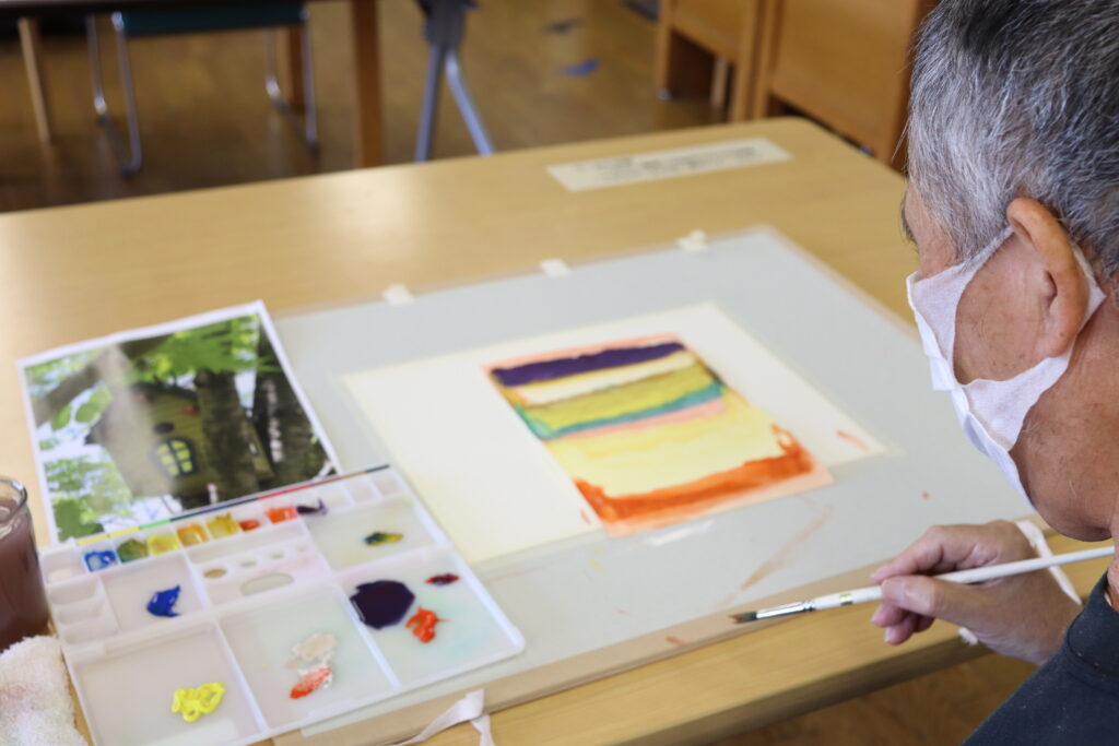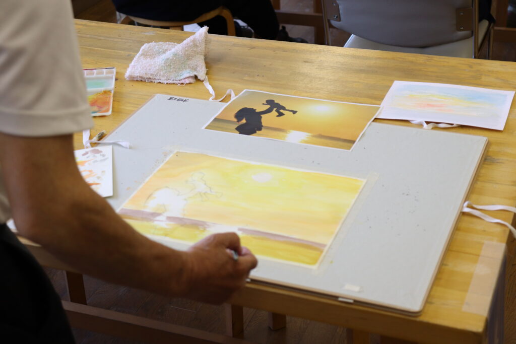 絵画サロンは、13時~16時まで開催していますが、ご自身の予定や体調に合わせてご参加いただけます。また、絵画サロンの時間内に絵が完成しなくても、続きはご自宅で描いたり、次回の絵画サロンで続きを描く方もいらっしゃいます。