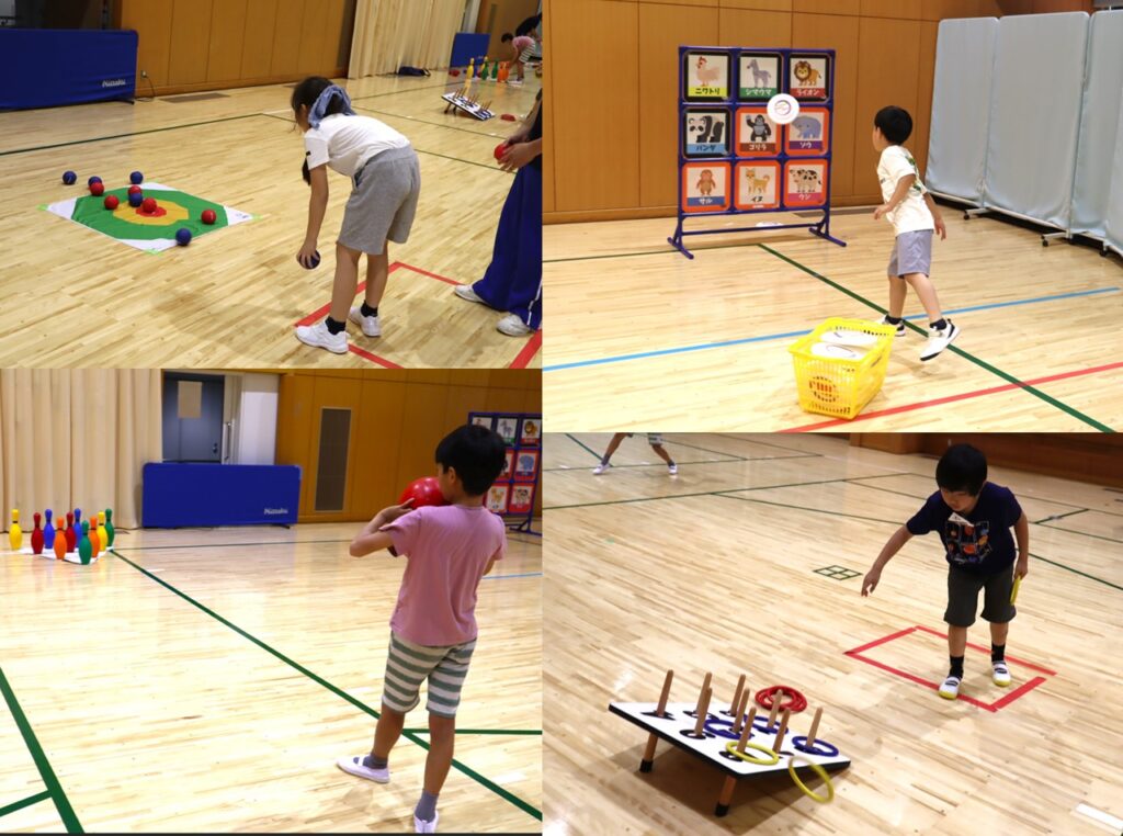 スポーツプログラム1ではボウリングや輪投げ、ボッチャ、的当てなど、対人スポーツではなく、ターゲットに向けて頑張りました。