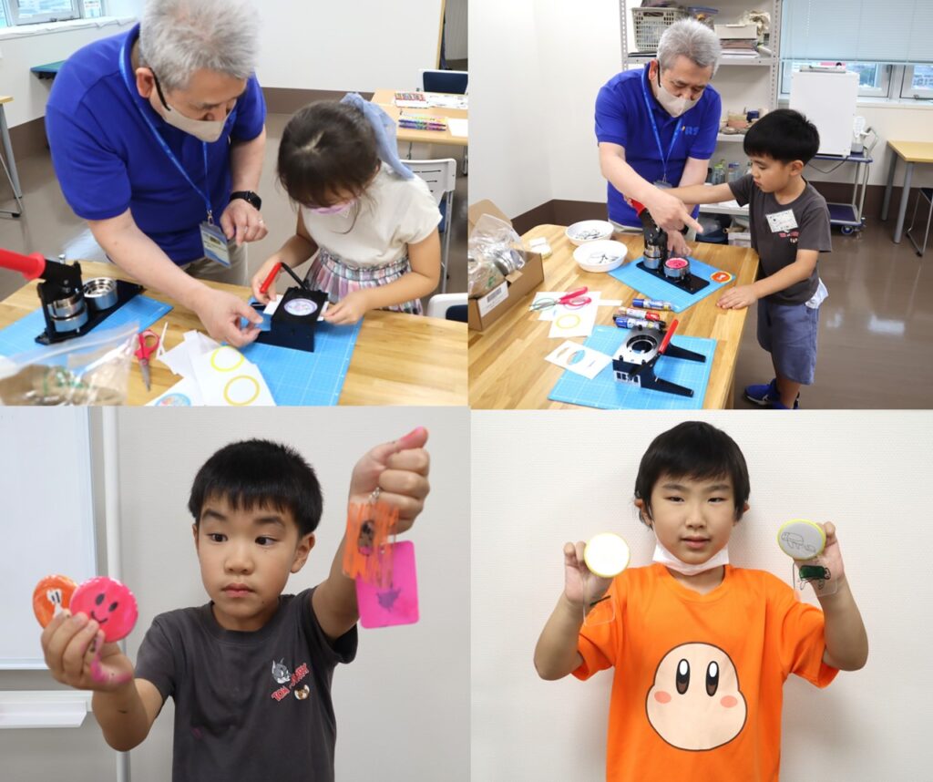 キーホルダーが出来上がった後は、缶バッチ作りに取り組みました。