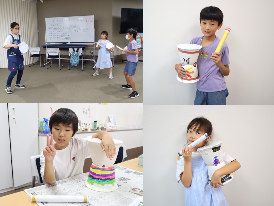 各々素敵な太鼓を作った後は、みんなで音楽に合わせて踊りながら太鼓をたたいてみました♪