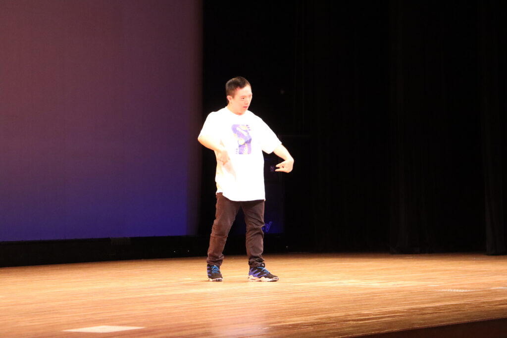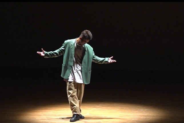 エントリーナンバー④番 信清圭祐さん。2023年のラポールダンスコンテスト ソロ部門の最優秀賞です。柔軟性のあるスムーズで多彩な動きで会場を盛り上げました。