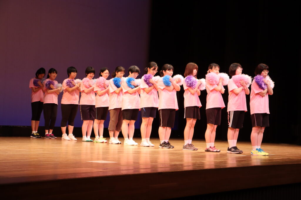 続いて、エントリーナンバー②番は、ラポエアガール。手作りのボンボンを持って様々なフォーメーションを披露してくれました。本番前に舞台袖で声を掛け合っていたのが印象的でした。