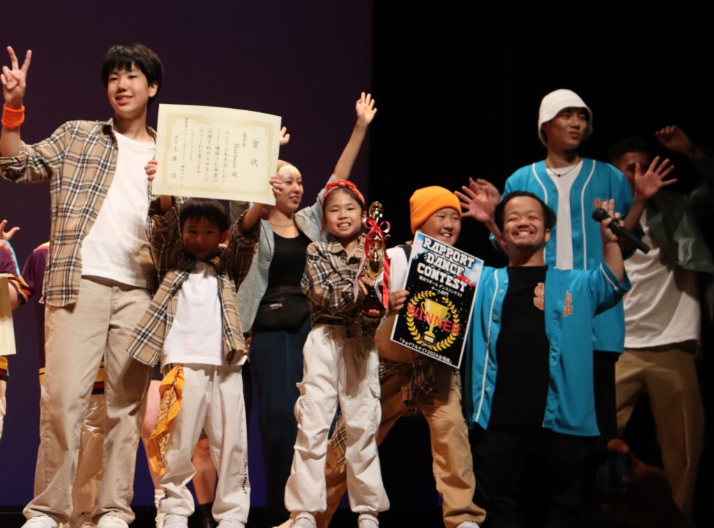 つづいて、ラポールダンスコンテスト2024のチーム部門の最優秀チームは、Haribooo。元気いっぱい!笑顔いっぱい!のダンスで審査員だけでなくお客様のハートをがっちり掴みました。リハーサルの時も、出番直前の舞台袖でも、表彰式の時も皆、仲良しで本当に楽しそうな姿が印象的です。審査員のyu-skyさんもコメントしていましたが、涙が出そうになった方も少なくないのではないでしょうか?
